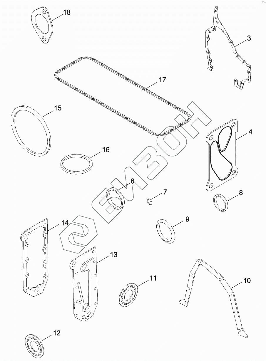 Графический каталог запасных частей к технике: CASE IH MX-305 Magnum. GASKET KIT - CYLINDER BLOCK