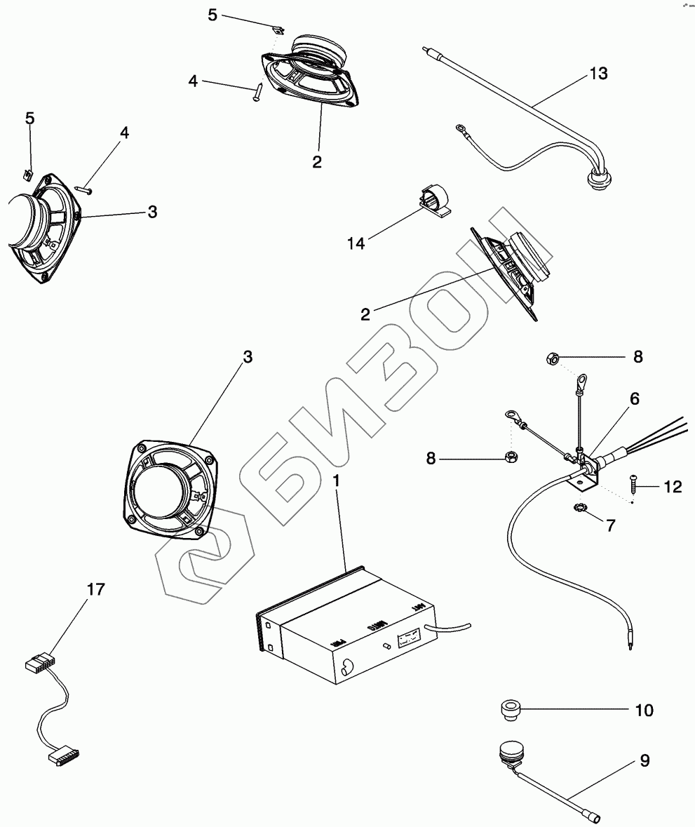 Графический каталог запасных частей к технике: CASE IH MX-305 Magnum. RADIOS, SPEAKERS AND ANTENNAS