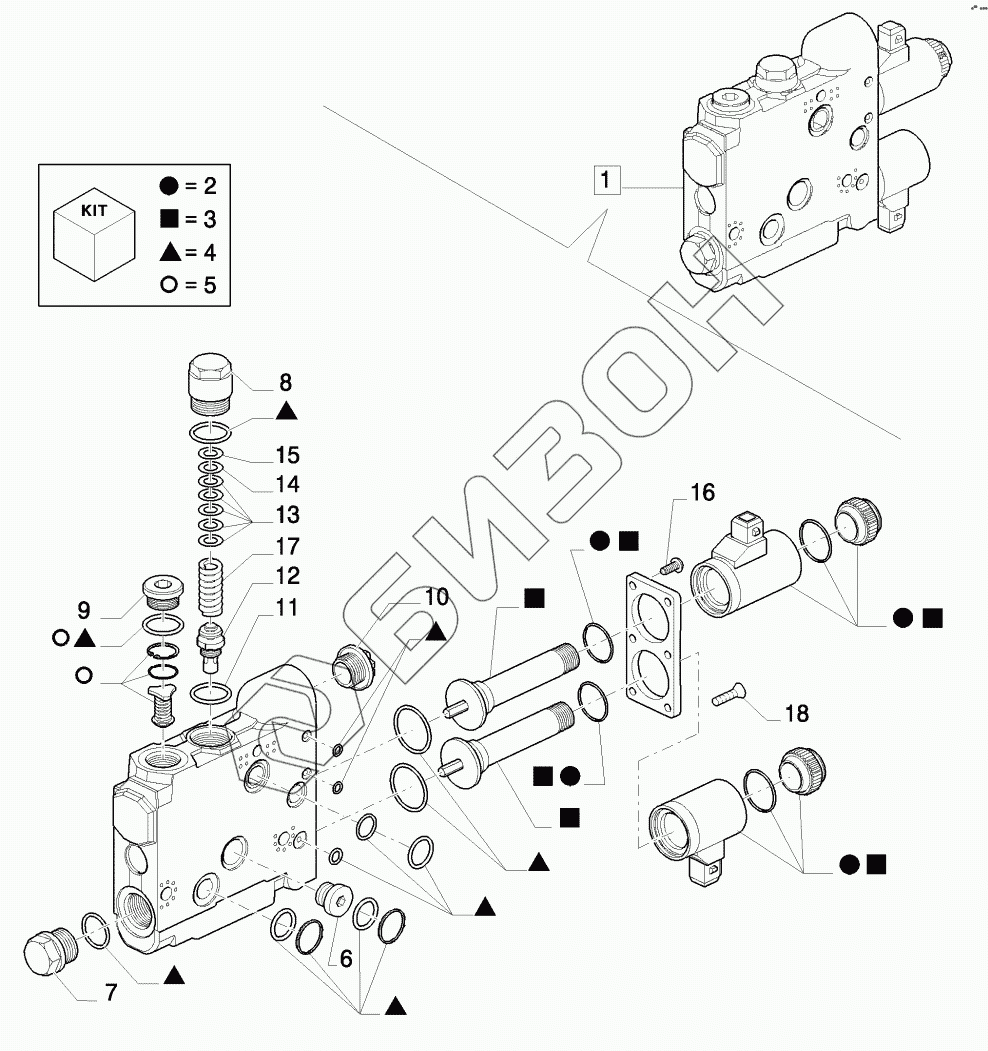 Графический каталог запасных частей к технике: CASE IH Puma-210. B EDC VALVE - BREAKDOWN