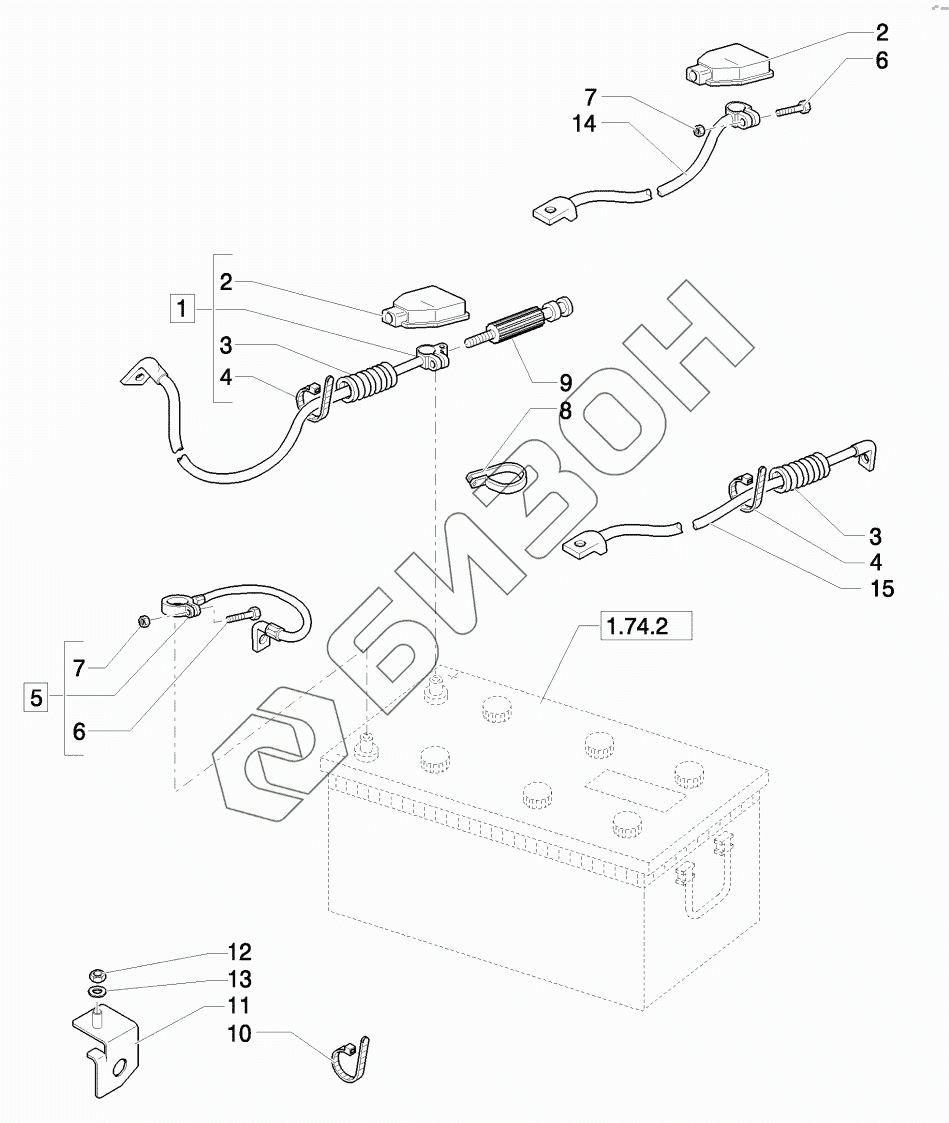 Графический каталог запасных частей к технике: CASE IH Puma-210. BATTERY, CABLES