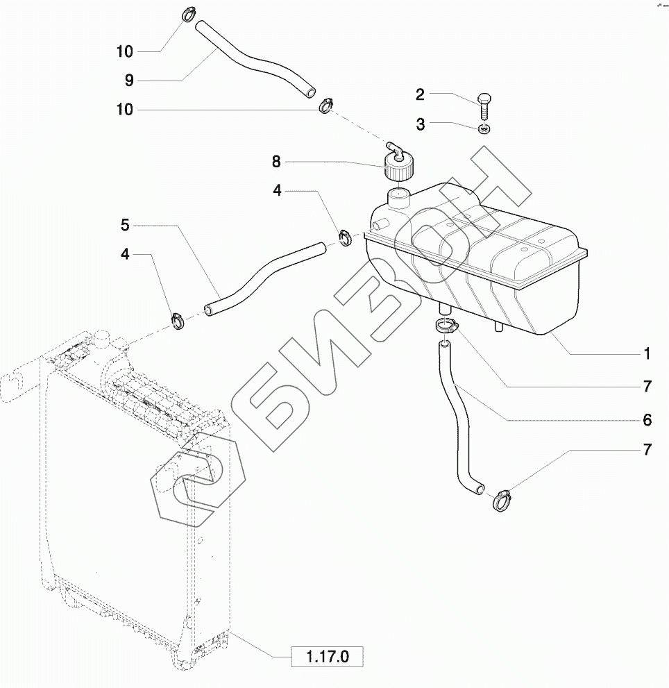 Графический каталог запасных частей к технике: CASE IH Puma-210. COOLING, EXPANSION TANK / TEMPERATURE CONTROL