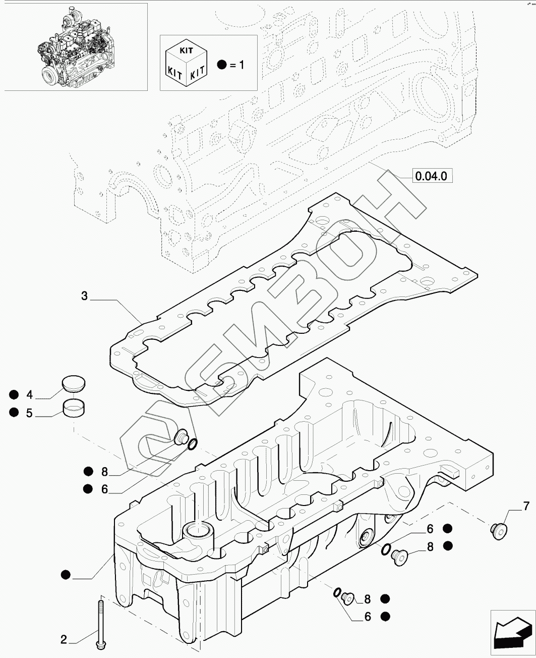 Графический каталог запасных частей к технике: CASE IH Puma-210. ENGINE OIL SUMP