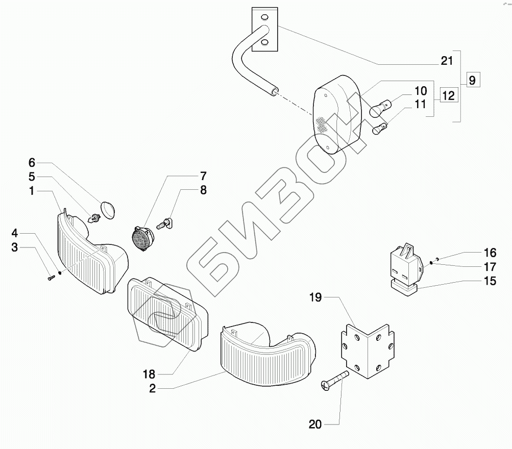 Графический каталог запасных частей к технике: CASE IH Puma-210. HEADLAMPS - INDICATORS