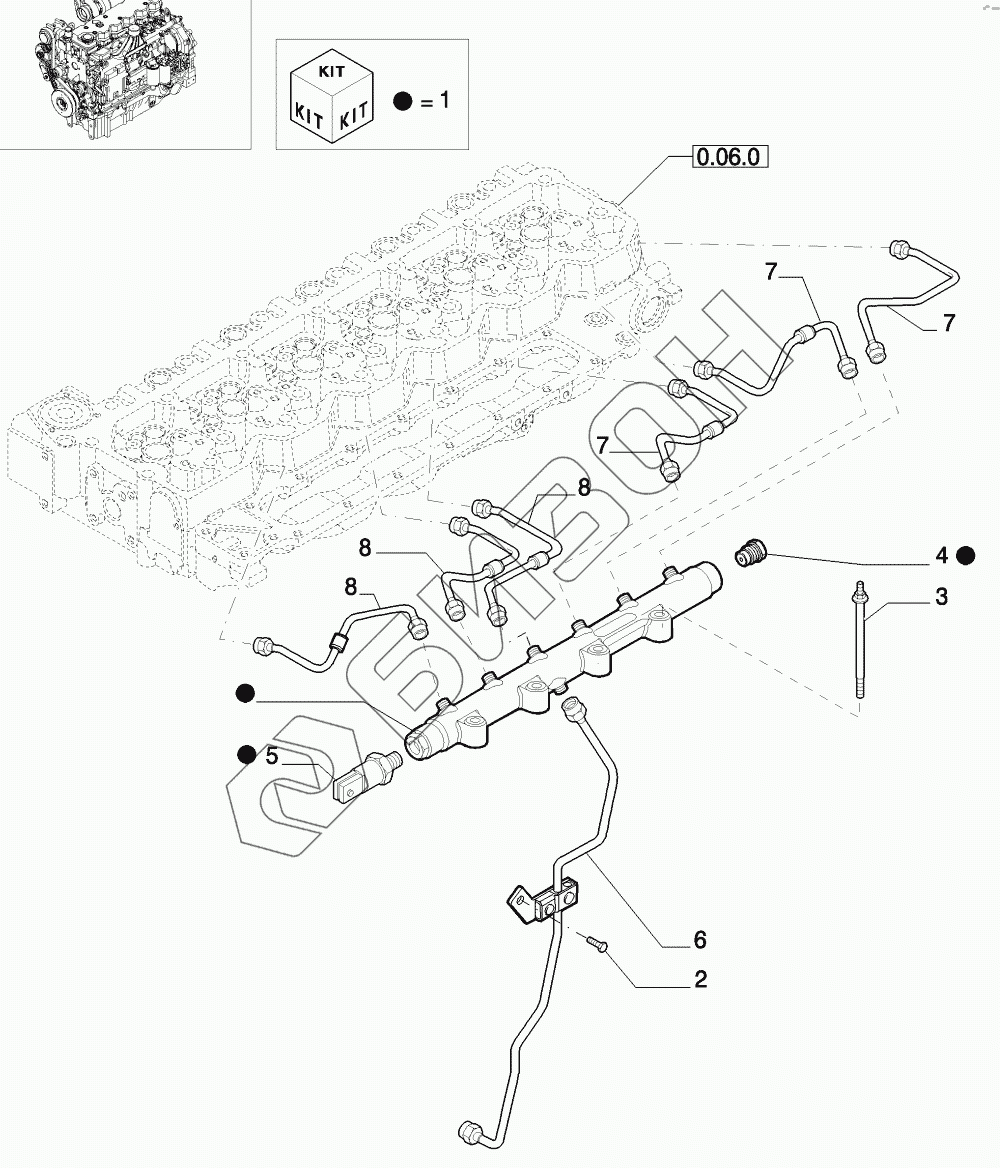 Графический каталог запасных частей к технике: CASE IH Puma-210. INJECTION EQUIPMENT - PIPING