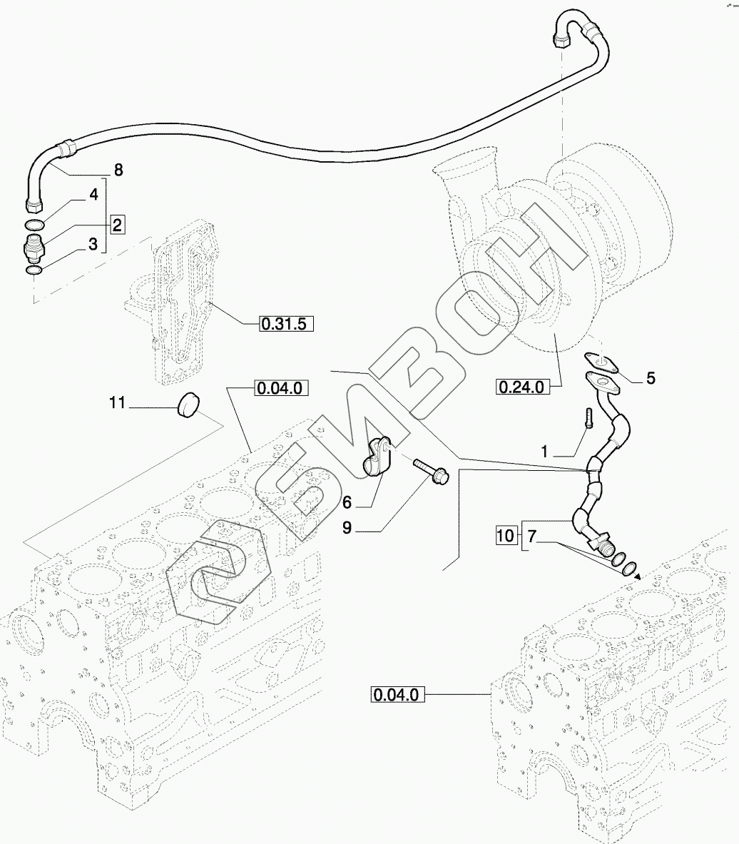 Графический каталог запасных частей к технике: CASE IH Puma-210. PIPING ENGINE OIL