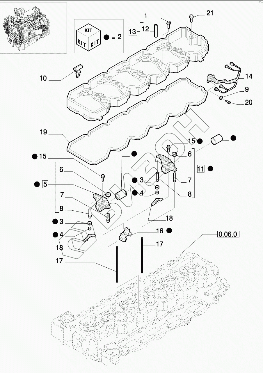 Графический каталог запасных частей к технике: CASE IH Puma-210. ROCKER SHAFT