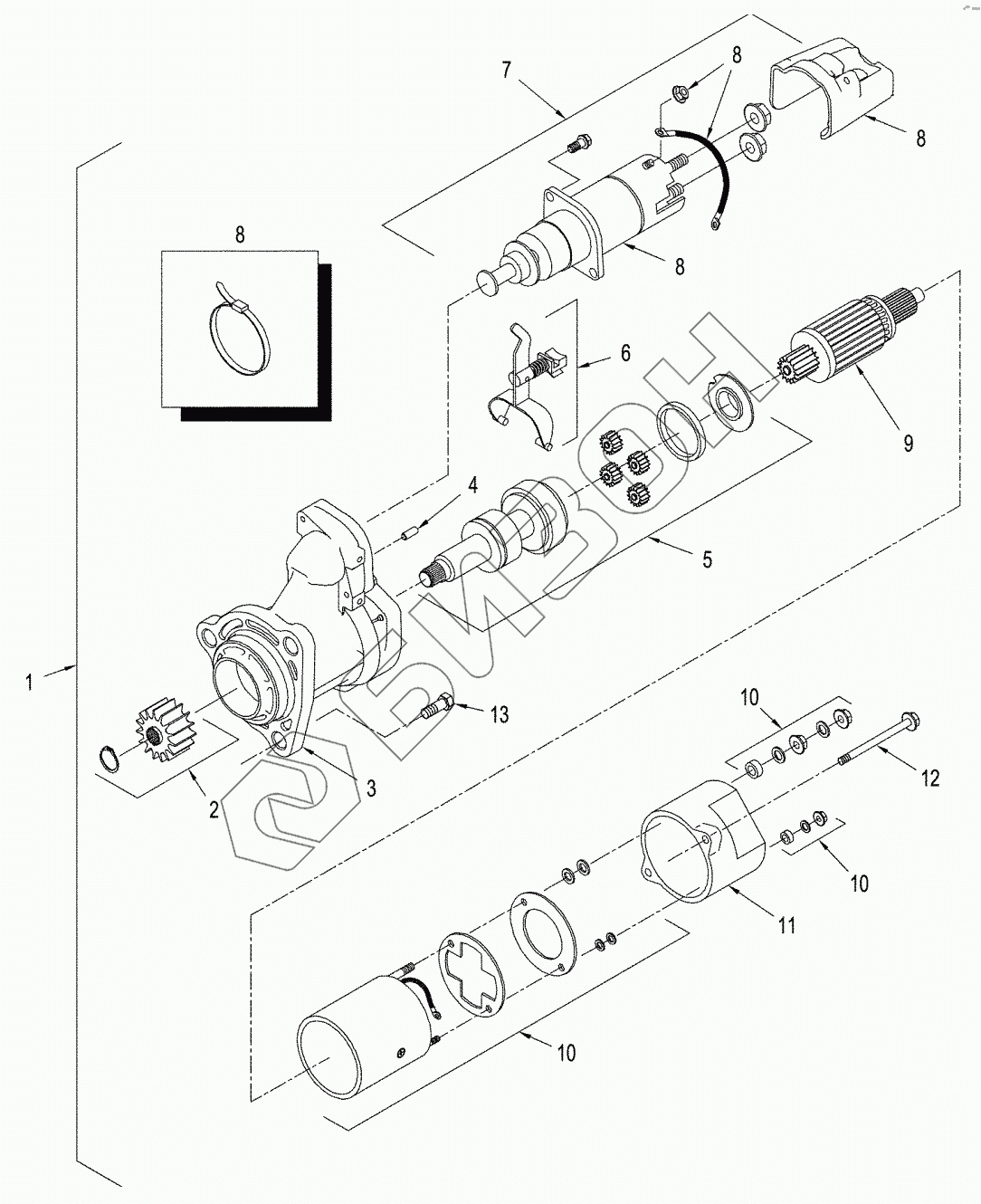 Графический каталог запасных частей к технике: CASE IH STX-530 Steiger. STARTER ASSEMBLY