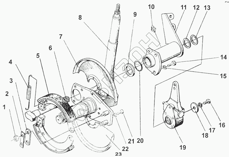 | 19 | Рычаг тормоза регулировочный | Рычаг тормоза регулировочный |