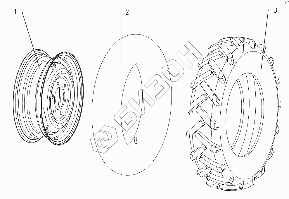 Графический каталог запасных частей к технике: DongFeng 224G3. Front Drive Wheel