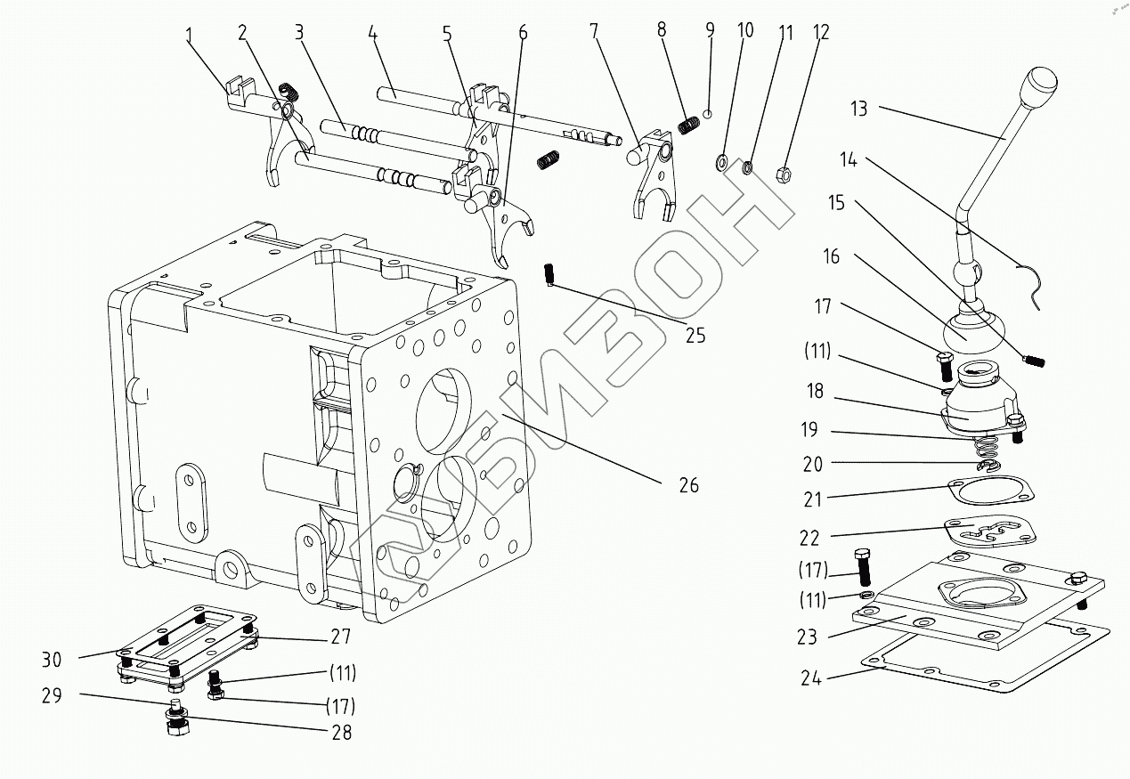| 5 | 300.37.125-2 | Shaft, right shift fork |