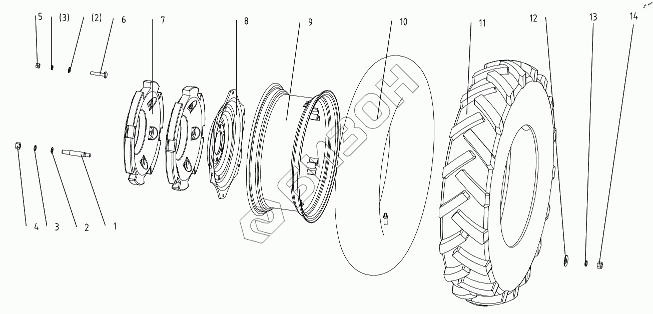 Графический каталог запасных частей к технике: DongFeng 254G2. Drive Wheel (11.2-20)