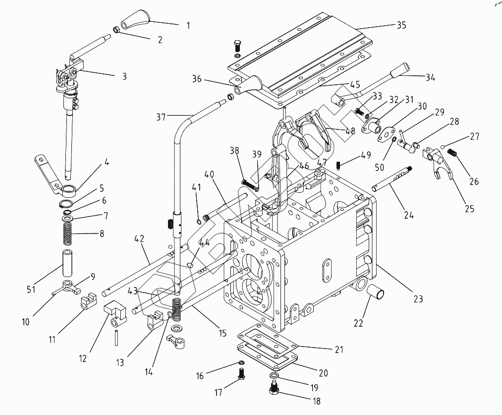 Графический каталог запасных частей к технике: DongFeng 254G2. Gearbox (A)