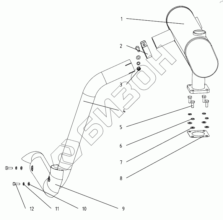 Графический каталог запасных частей к технике: DongFeng 304G2. Exhaust pipe