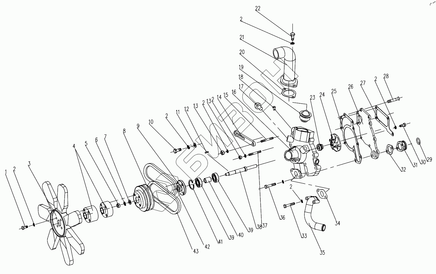 Графический каталог запасных частей к технике: DongFeng 304G2. Water Pump and Fan Assembly