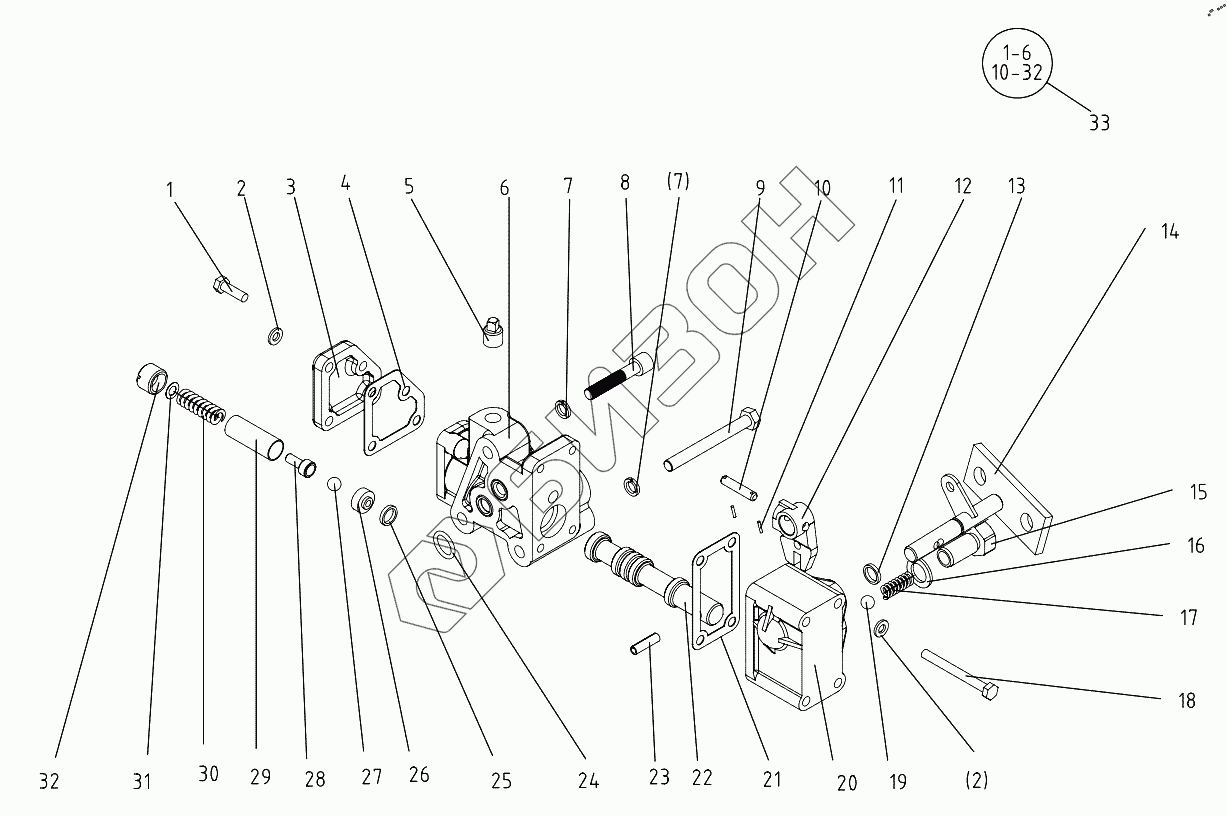 Графический каталог запасных частей к технике: DongFeng 304G2. Hydraulic Oil Distributor