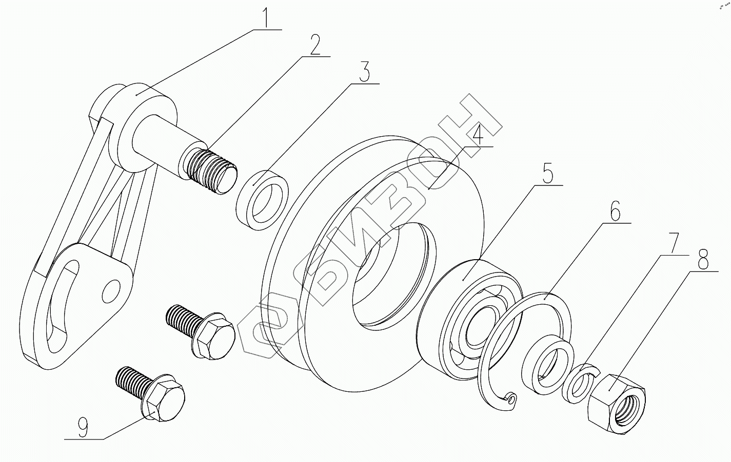 Графический каталог запасных частей к технике: DongFeng 304G2. Tension pulley assembly