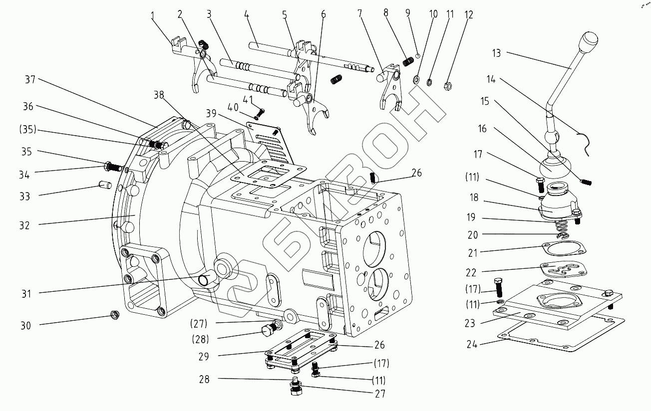 | 5 | 300.37.125-2 | Shaft, right shift fork |