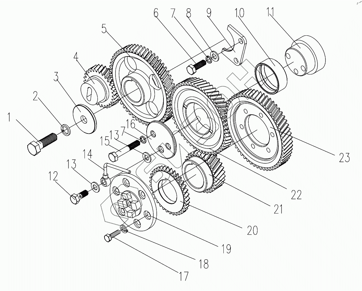 Графический каталог запасных частей к технике: DongFeng 404CE. Timing Gear Train