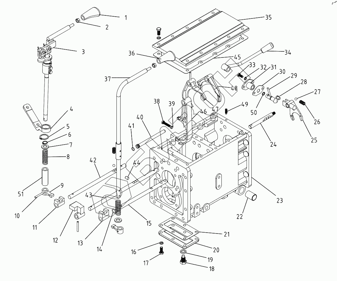 Графический каталог запасных частей к технике: DongFeng 404G2. Gearbox (A)