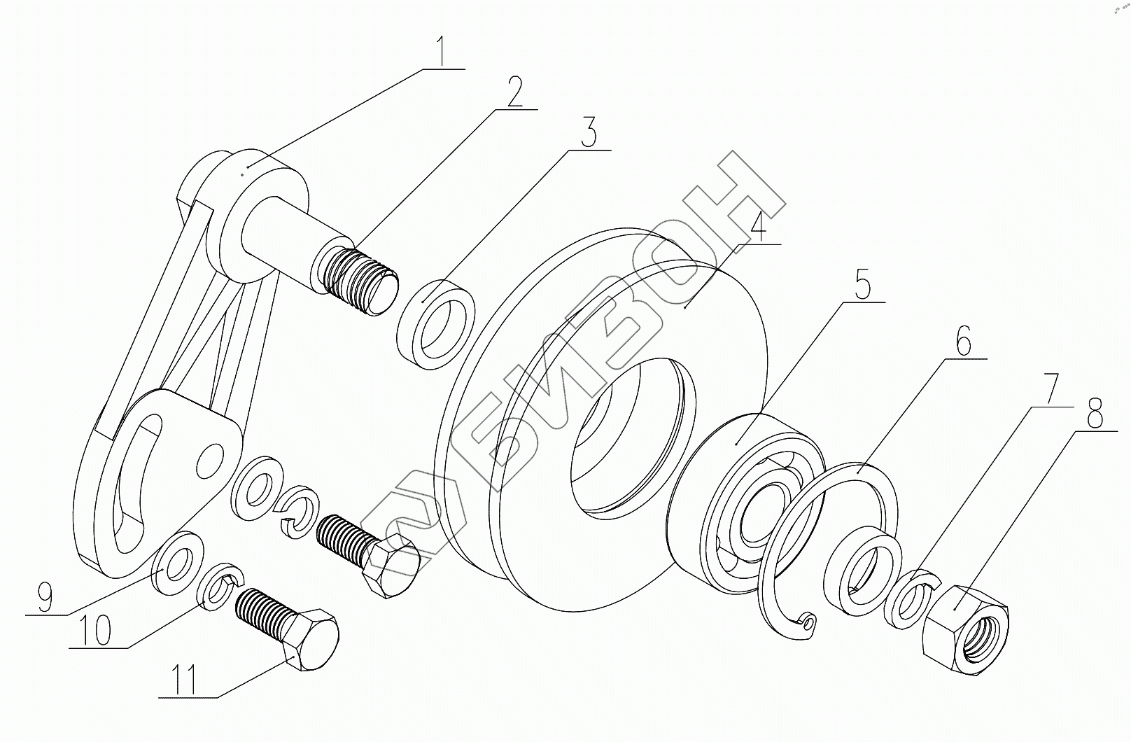 Графический каталог запасных частей к технике: DongFeng 404G2. Tension pulley assembly