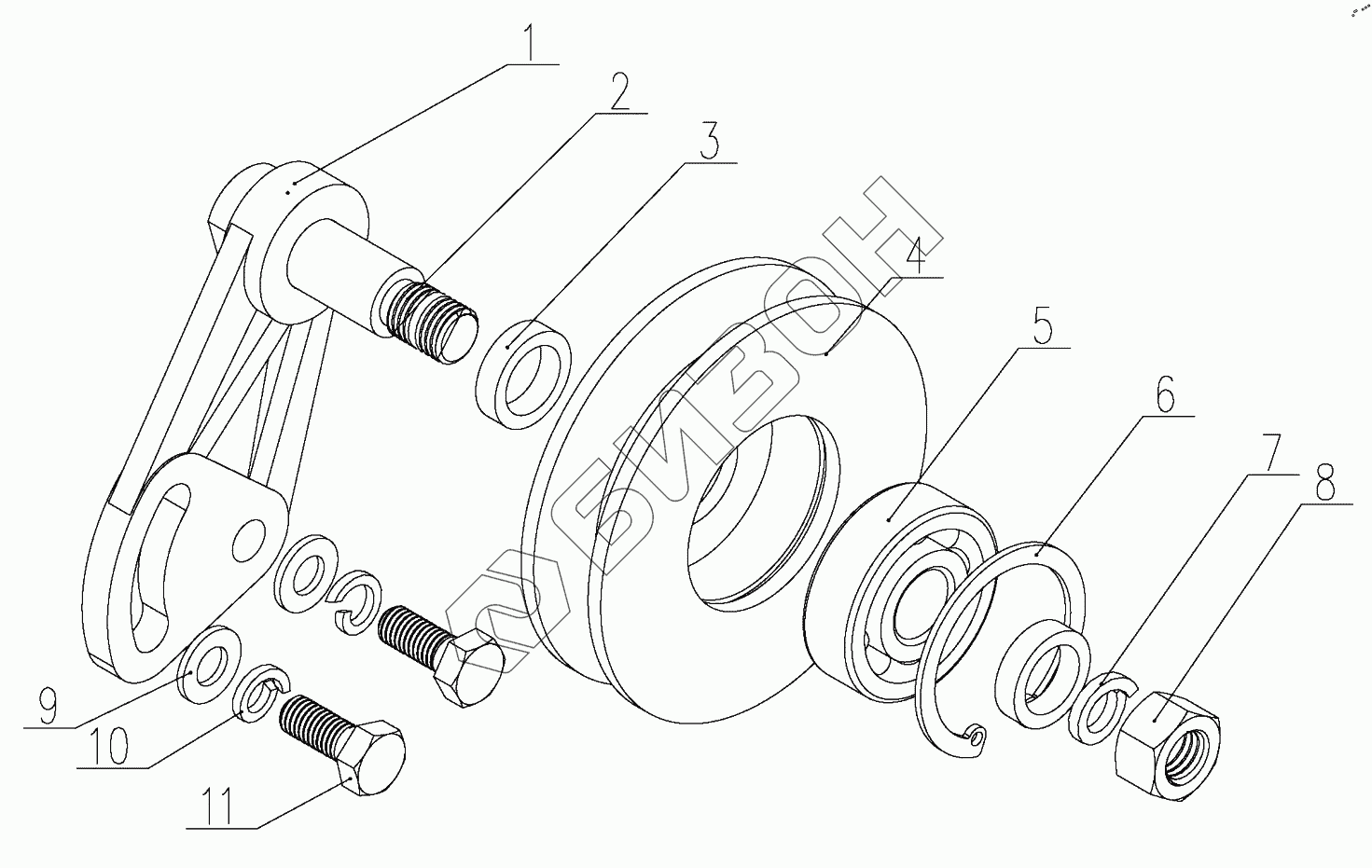 Графический каталог запасных частей к технике: DongFeng 404G2. Tension pulley assembly