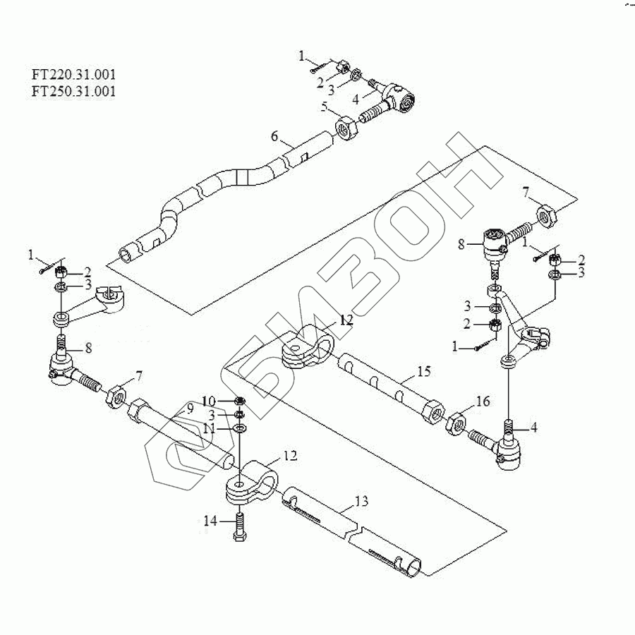 | 15 | FT250.31.032 | left cross drawbar assembly |