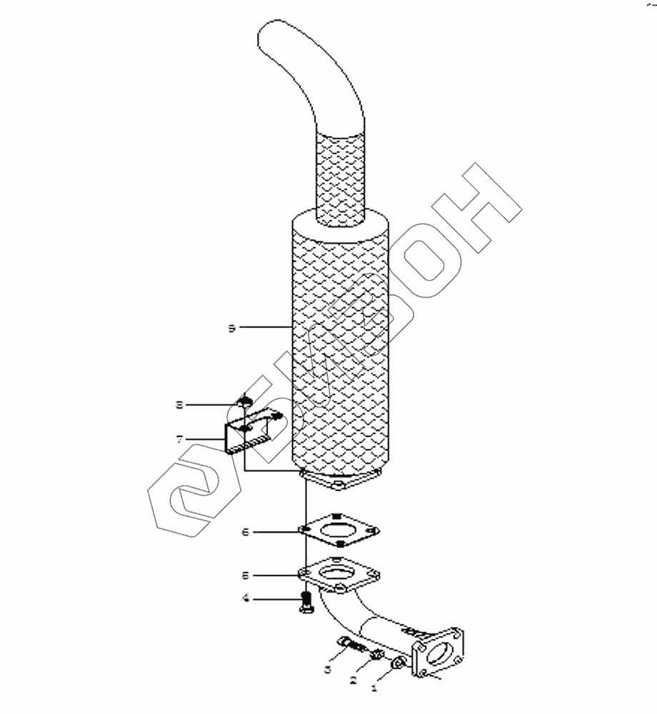 Графический каталог запасных частей к технике: Foton Europard 40. Exhaust Tube Assembly