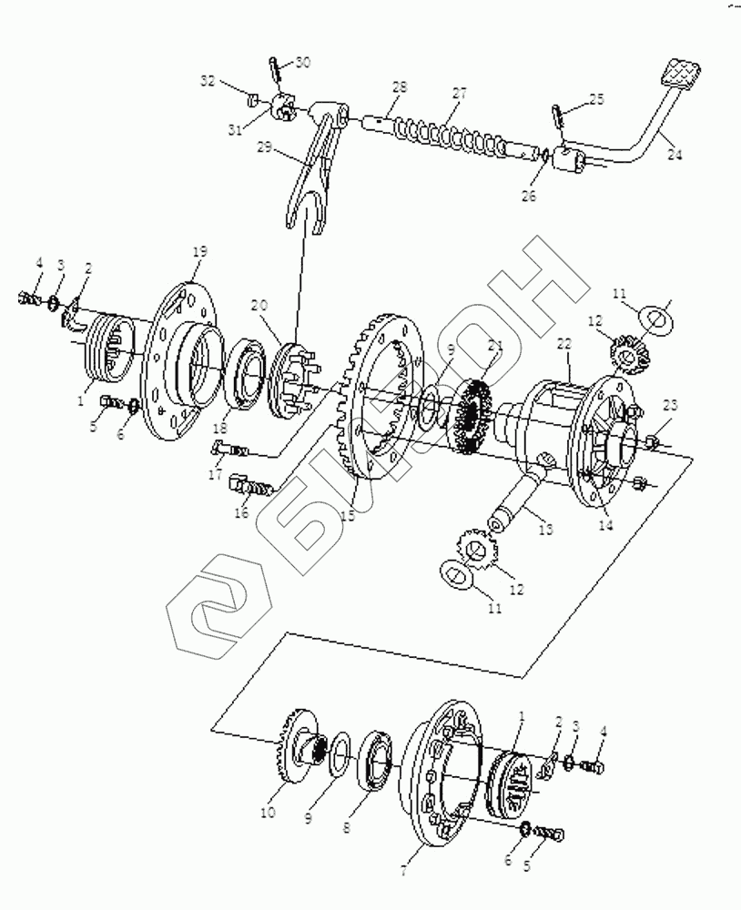 | 28 | FT300.35.158a | Fork shaft of differential lock |
