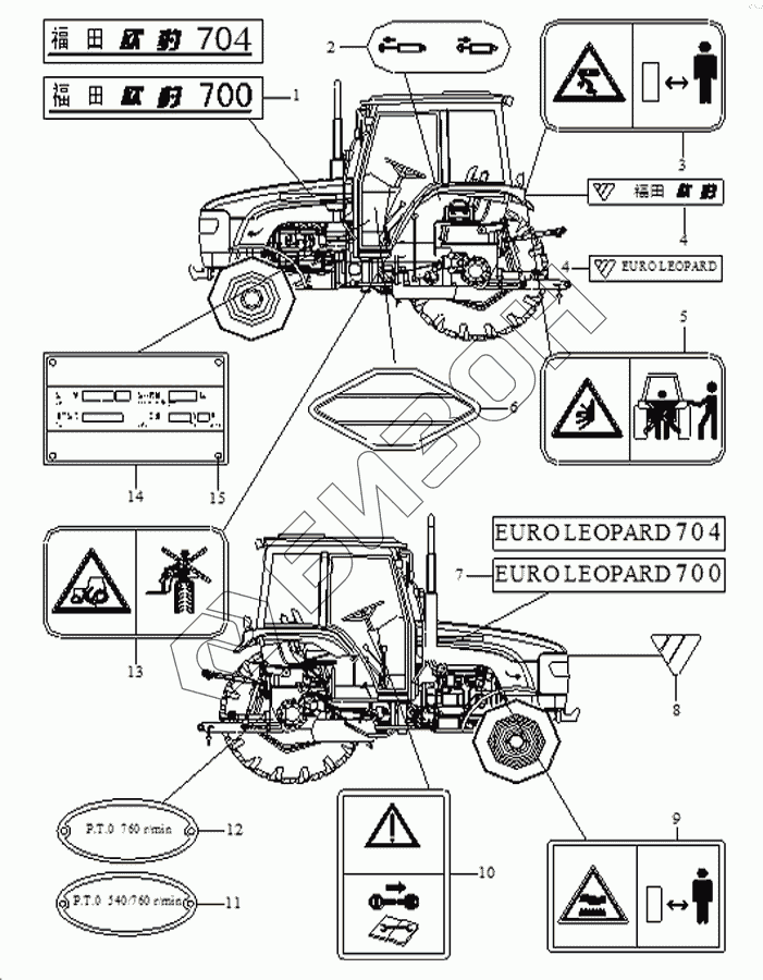 | 12 | FT650.51.128 | wheel drive and PTO sign |