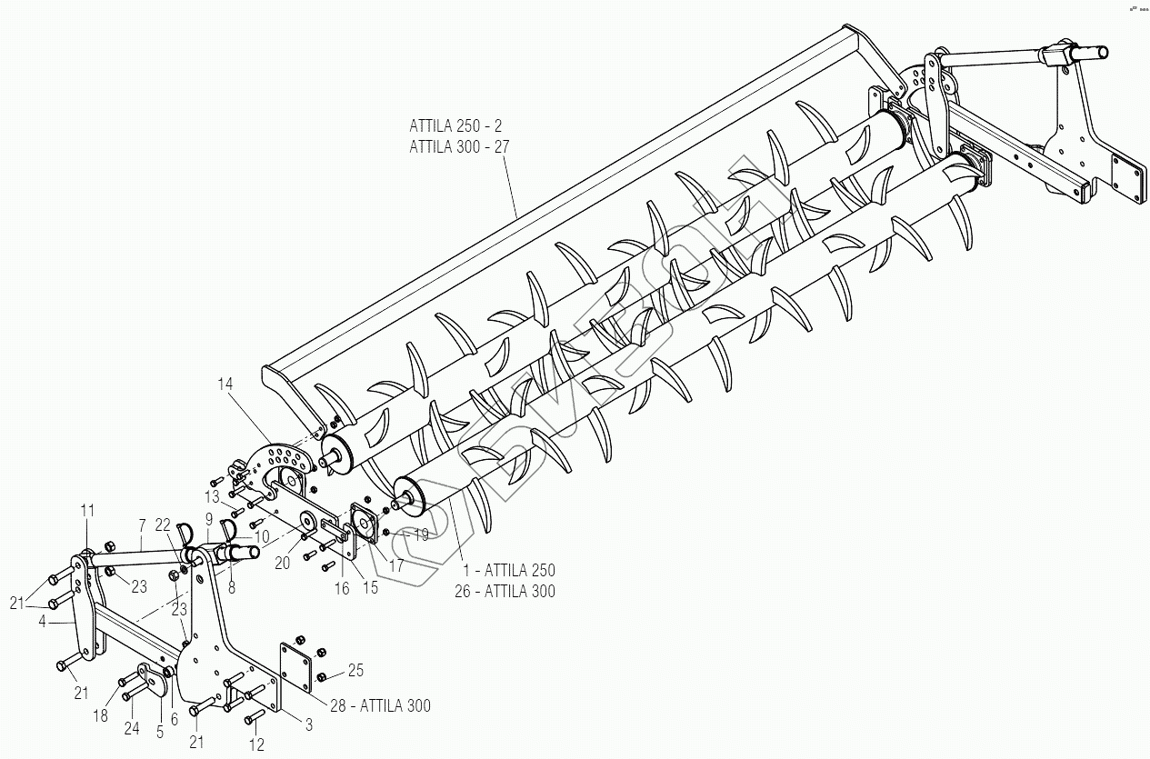 Графический каталог запасных частей к технике: Gaspardo ATTILA. MECHANICAL DOUBLE REAR ROLLER