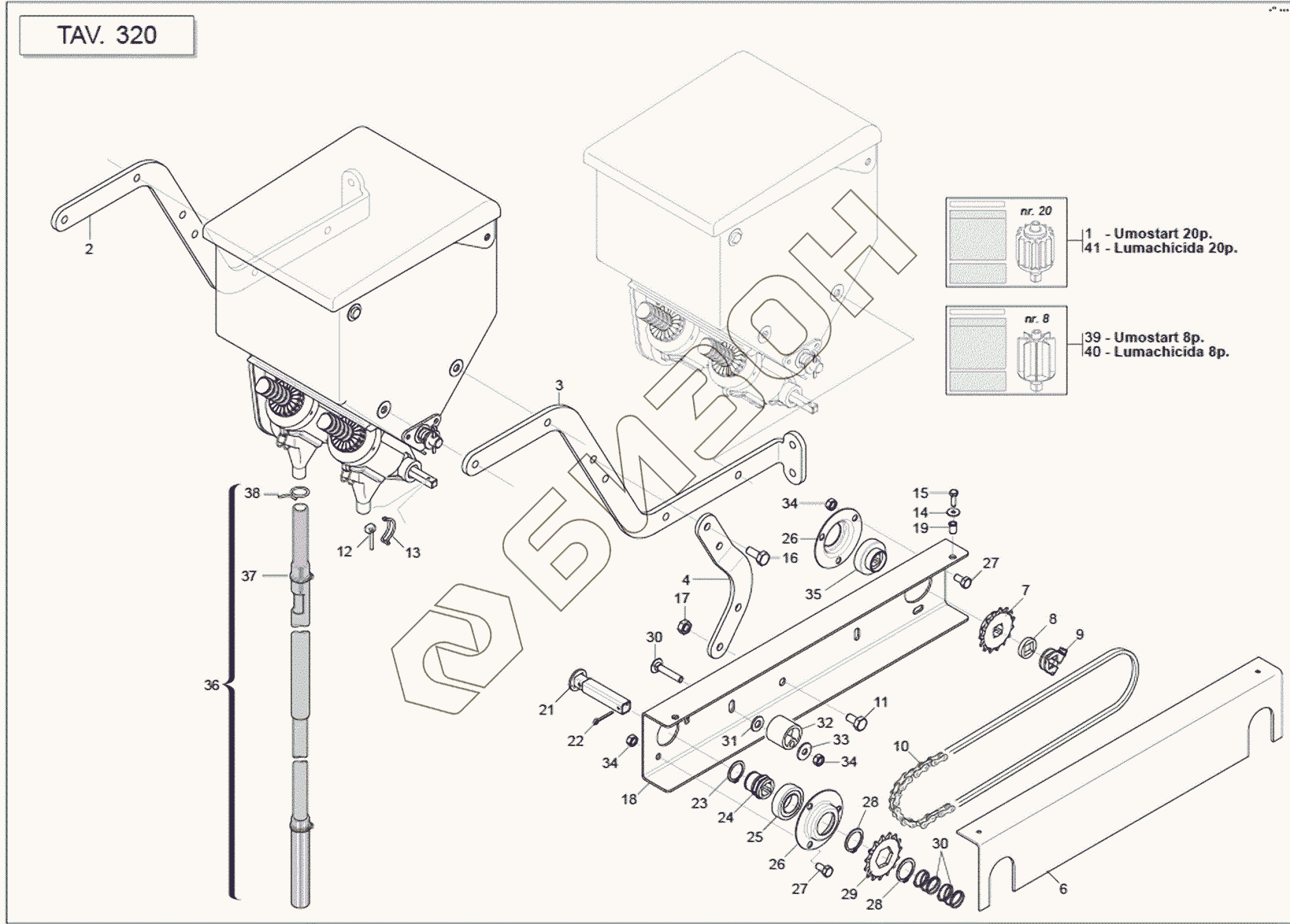 Графический каталог запасных частей к технике: Gaspardo MAESTRA (MT). DOUBLE MICROGRANULATOR APPLICATION