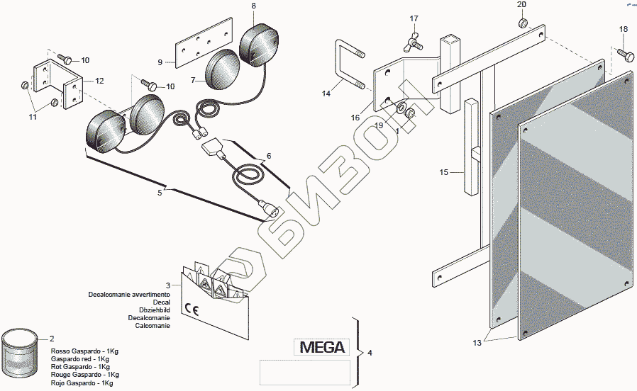 Графический каталог запасных частей к технике: Gaspardo MEGA 600. ACCESSORIES