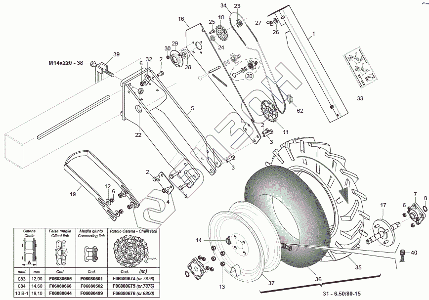 | 5 | G16630300 | WHEEL SUPPORT 6,50/80-15 |