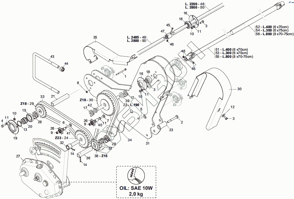 Графический каталог запасных частей к технике: Gaspardo ROMINA. FERTILIZER TRANSMISSION