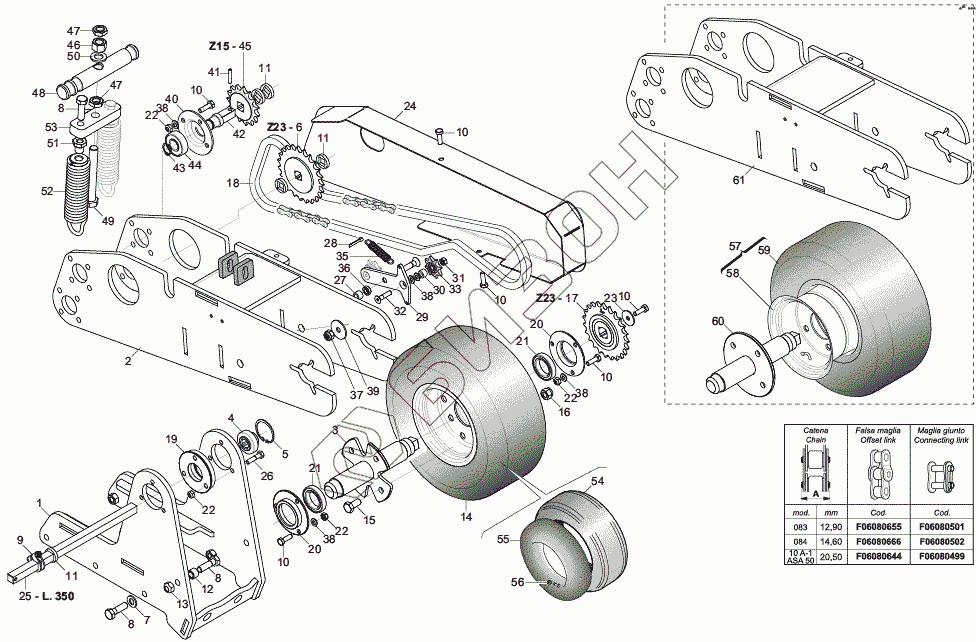 Графический каталог запасных частей к технике: Gaspardo ROMINA. TRANSMISSION WHEEL
