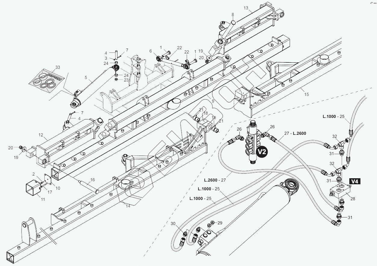 Графический каталог запасных частей к технике: Gaspardo Сеялка MAXIMETRO. REAR FRAME