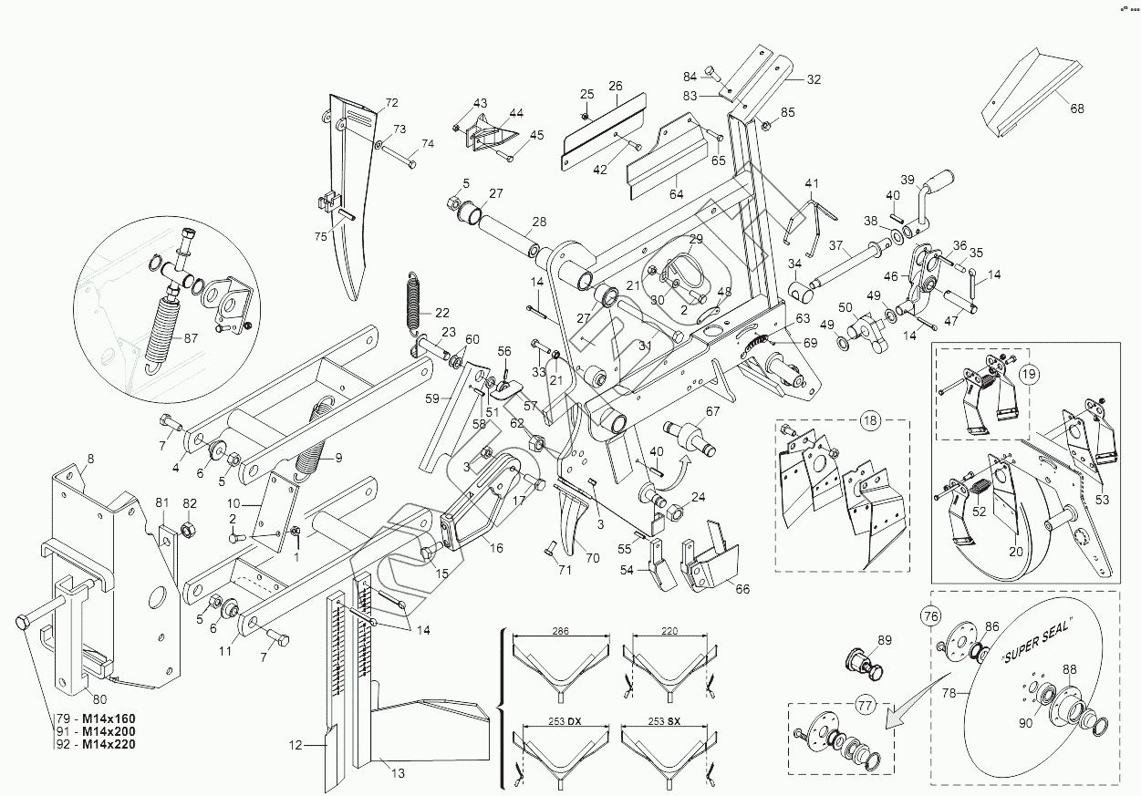 Графический каталог запасных частей к технике: Gaspardo Сеялка METRO MT/SP. "MT" ELEMENT FRAME