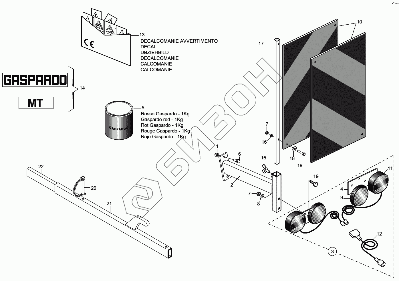 Графический каталог запасных частей к технике: Gaspardo Сеялка серии МТ. ACCESSORI