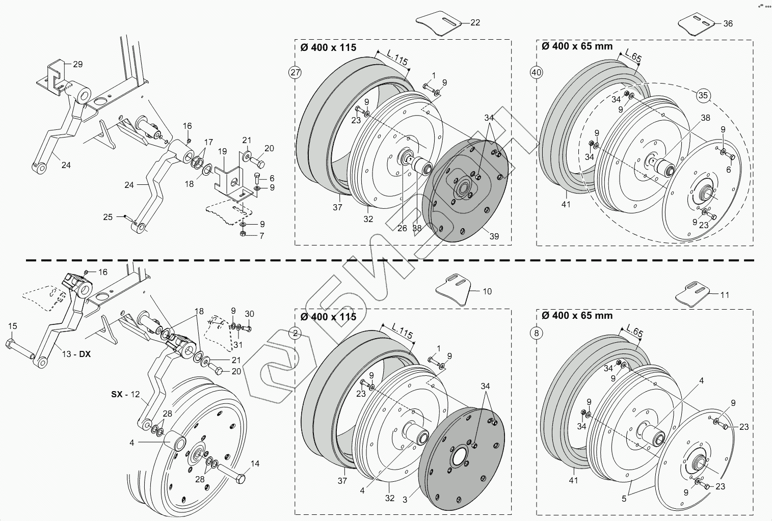 Графический каталог запасных частей к технике: Gaspardo Сеялка серии МТ. RUOTE DI PROFONDITA