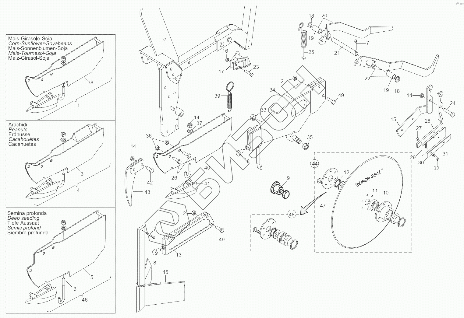 Графический каталог запасных частей к технике: Gaspardo SP. SLEEPING ELEMENTS