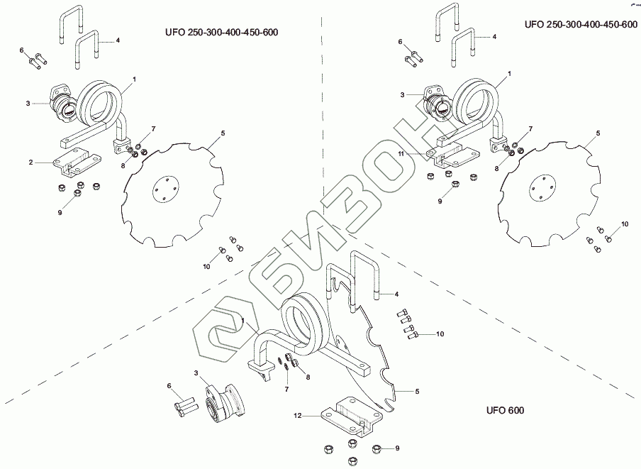 Графический каталог запасных частей к технике: Gaspardo UFO. ELEMENTS OPERATORS FRONT