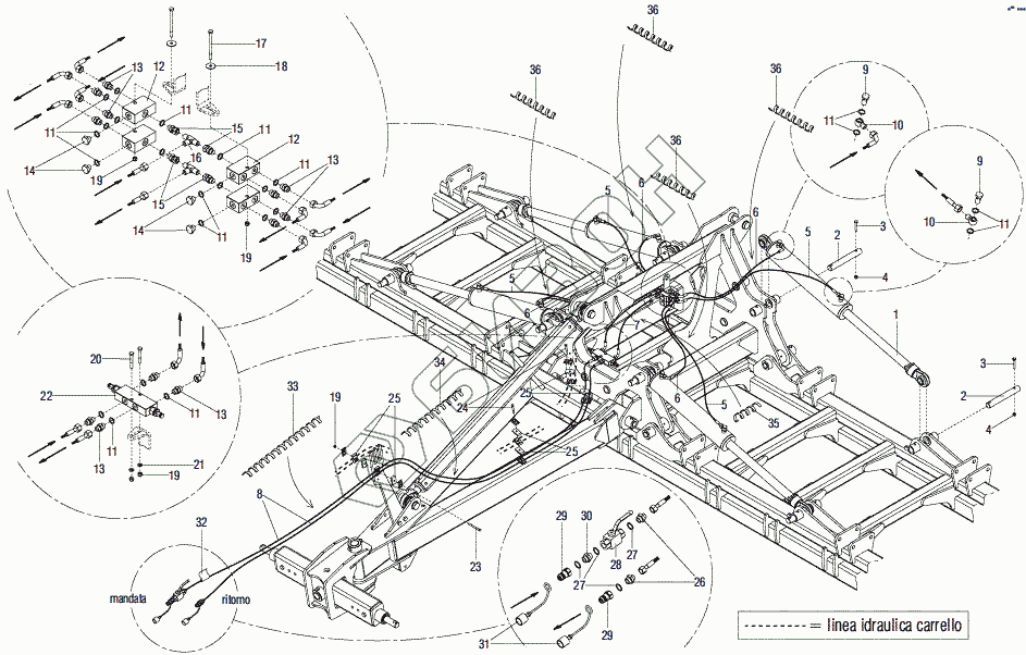 Графический каталог запасных частей к технике: Gaspardo UFO TZAR. SIDE FRAMES HYDRAULIC PLANT