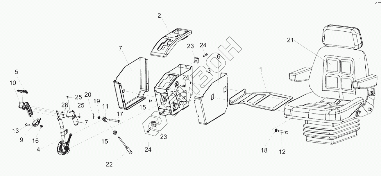 Графический каталог запасных частей к технике: Гомсельмаш ES4. Сиденье КП-4-0119290