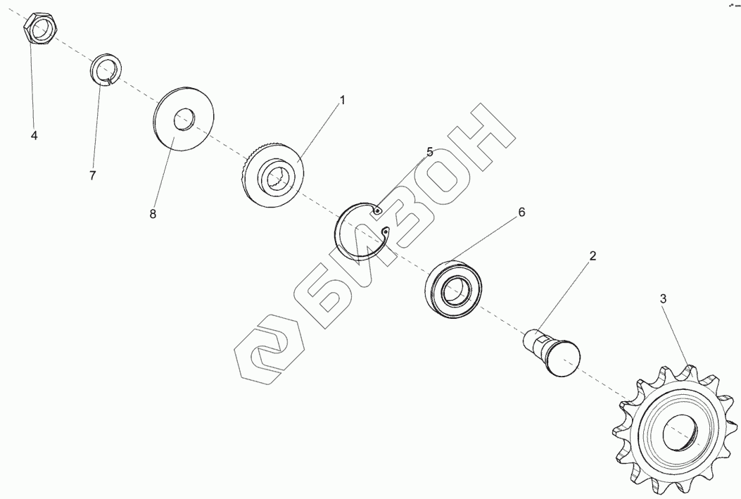 Графический каталог запасных частей к технике: Гомсельмаш КДП-3000 Палессе FT40. Устройство натяжное КИС 0214000В