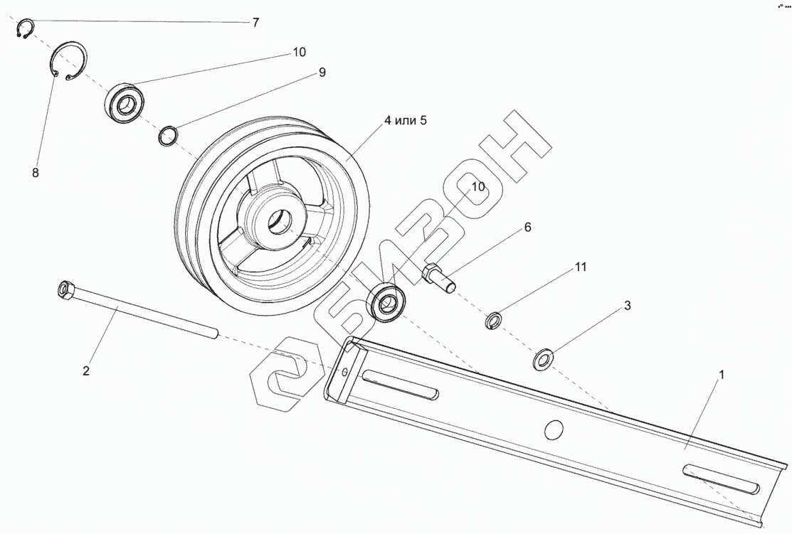 Графический каталог запасных частей к технике: Гомсельмаш КДП-3000 Палессе FT40. Устройство натяжное КИС 0215000Б