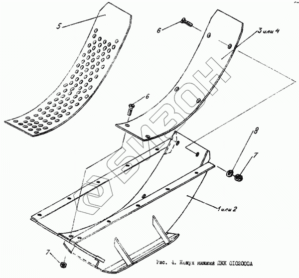 Графический каталог запасных частей к технике: Гомсельмаш КПК Полесье-3000. Кожух нижний ПКК 0102000A