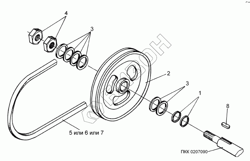 Графический каталог запасных частей к технике: Гомсельмаш КПК Полесье-3000. Шкив привода делителя