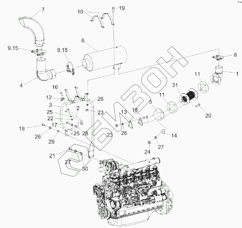 | 7 | КВС-1-0157030 | Труба выхлопная |