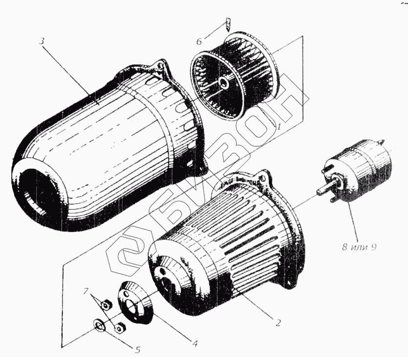 Графический каталог запасных частей к технике: Гомсельмаш КСК-100А. Вентилятор кабины 54-121-2Г