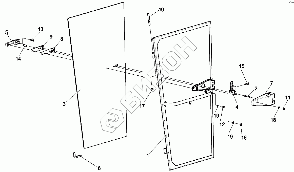 Графический каталог запасных частей к технике: Гомсельмаш КВК-800 (FS80-7). Дверь КЗК-10-0200140